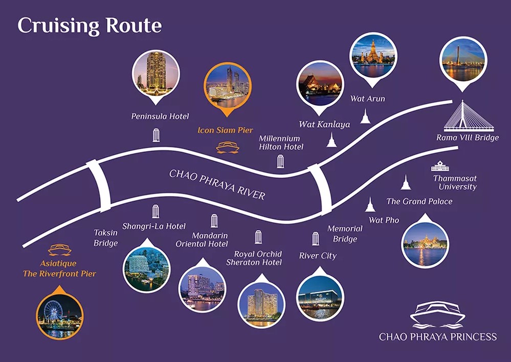 湄南河在泰國當地被稱為昭披耶河,是曼谷的生命之河,在現代豪華遊輪上用餐。沿著湄南河巡遊,欣賞歷史地標,一邊享用美味晚餐,一邊欣賞沿岸夜景,絕對是您體驗風情萬變的昭披耶河之最佳選擇。